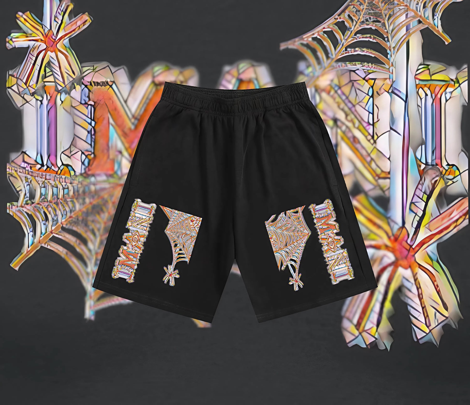 made from a soft, lightweight fabric for comfort, with an elastic waistband for a flexible fit. Side pockets add functionality, making them ideal for casual wear, lounging, or styling in a trendy, urban outfit. The unique graphics make these shorts a statement piece for anyone looking to stand out